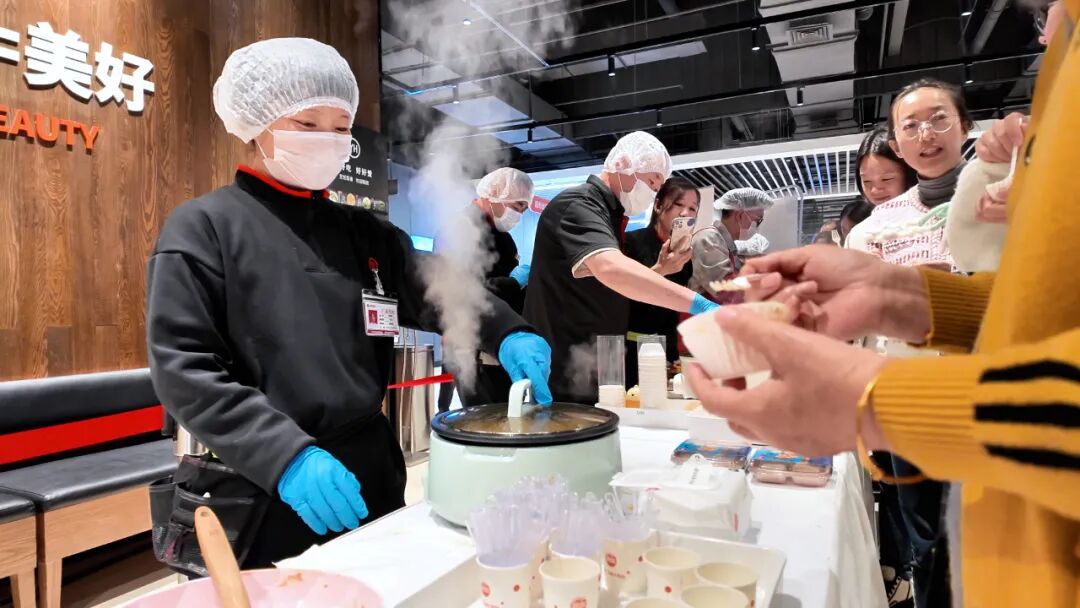 特别是在调改门店,消费者不仅可选购丰富优质的火锅商品,还能充分利用门店升级后的服务设施。例如,在肉禽柜台享受免费的切丝、切片等精细化加工,海鲜区提供清理、打包等服务,部分门店还可实现代客烹饪,进一步优化“立刻开涮”的便捷体验。