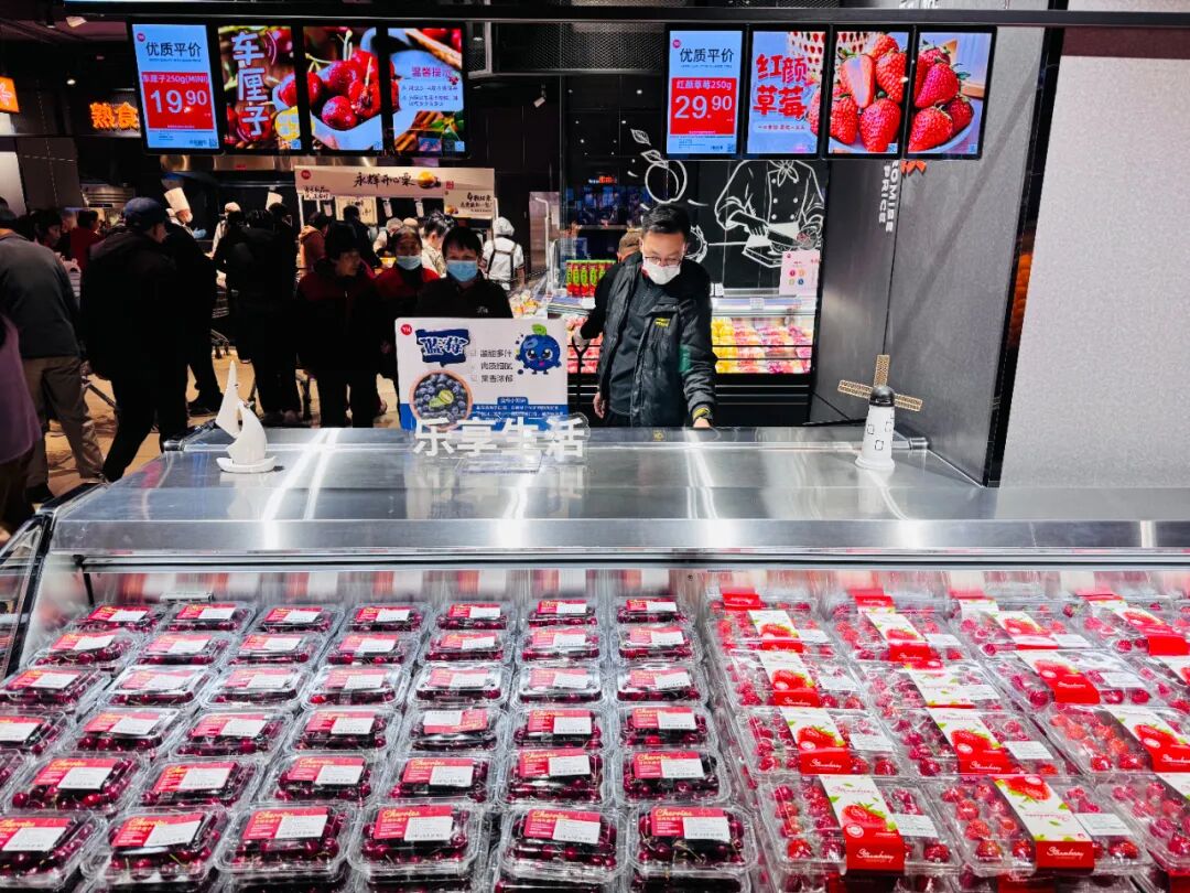 各门店在生鲜品类上实现全面升级,一方面引入有机蔬菜、定向种植蔬菜等高品质食材,另一方面深度挖掘全球特色水果资源。重庆开州新天地广场店推出佳农香糯蕉、冰鲜挪威三文鱼;什邡天耀中心店主打智利车厘子、佳沃秘鲁蓝莓;太原多彩城店引进亚麻籽猪肉、现切潮汕牛肉,全方位满足消费者对品质生鲜的需求。