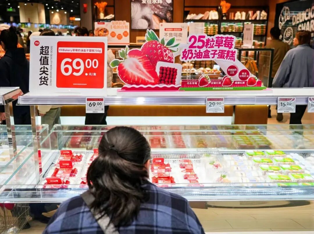 与此同时,来自丹东、成都等产区的草莓也如期上架,成为冬日水果区的亮点。与之呼应,烘焙区域的明星单品“草莓奶油盒子蛋糕”也受到广泛关注。这款产品以整盒包含25颗红颜草莓为特色,搭配MONIN专属定制草莓果酱,口感层次丰富,成为连接时令鲜果与烘焙甜点的畅销商品。
